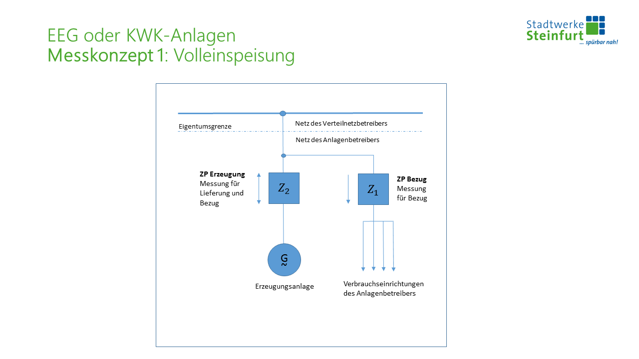 Die Einspeisung wird mit monatlichen Abschlagszahlungen und einer Abrechnung zum 31.12. des Jahres nach dem EEG vergütet.