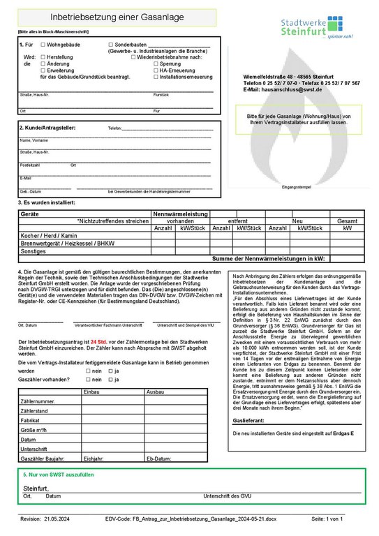 Inbetriebsetzung Gasanlage