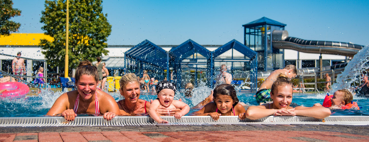 Familie im Außenbecken des Kombibads in Borghorst.