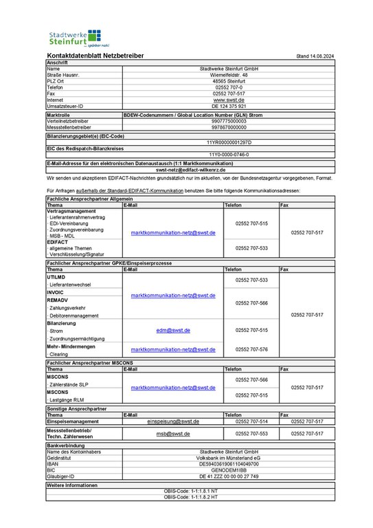 Kontaktdatenblatt Strom NB
