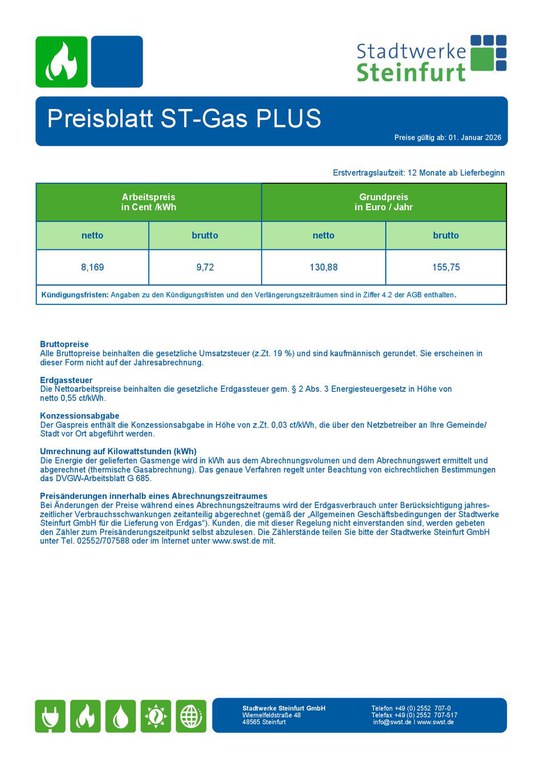 Preisblatt ST-Gas Plus